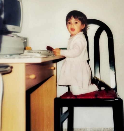 Esta soy yo con… ¿2-3 años? Apuntaba maneras, aunque no daba la talla. A día de hoy a veces me sigo sintiendo así, “subida a una silla” para seguir aprendiendo de los grandes.